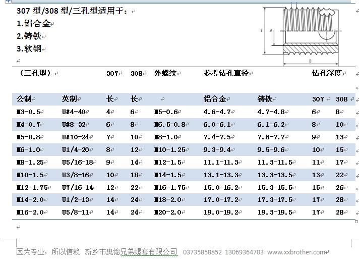 长春308型自攻丝套使用影响机器行业当中的作用:长春螺纹护套被认为一种紧固件产品,大概在几年前,当有人提到308型自攻长春丝套的时候会不清楚,然而,随着时间的推移,螺纹护套产品的选择不断增加,衬套的重要性,在行业当中的使用也随之的被各位熟悉。